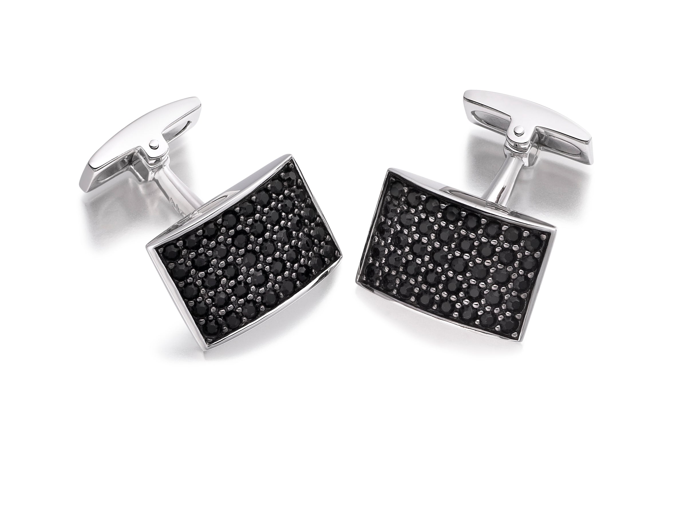 Hoxton London' Men's Sterling Silver Black CZ Curve Rectangle Cufflinks Width: 25mm; Setting: Pave; Stone Details: 2mm Black CZ Stones; Brand: Hoxton Cufflinks Metal Colour: Silver Metal: Silver