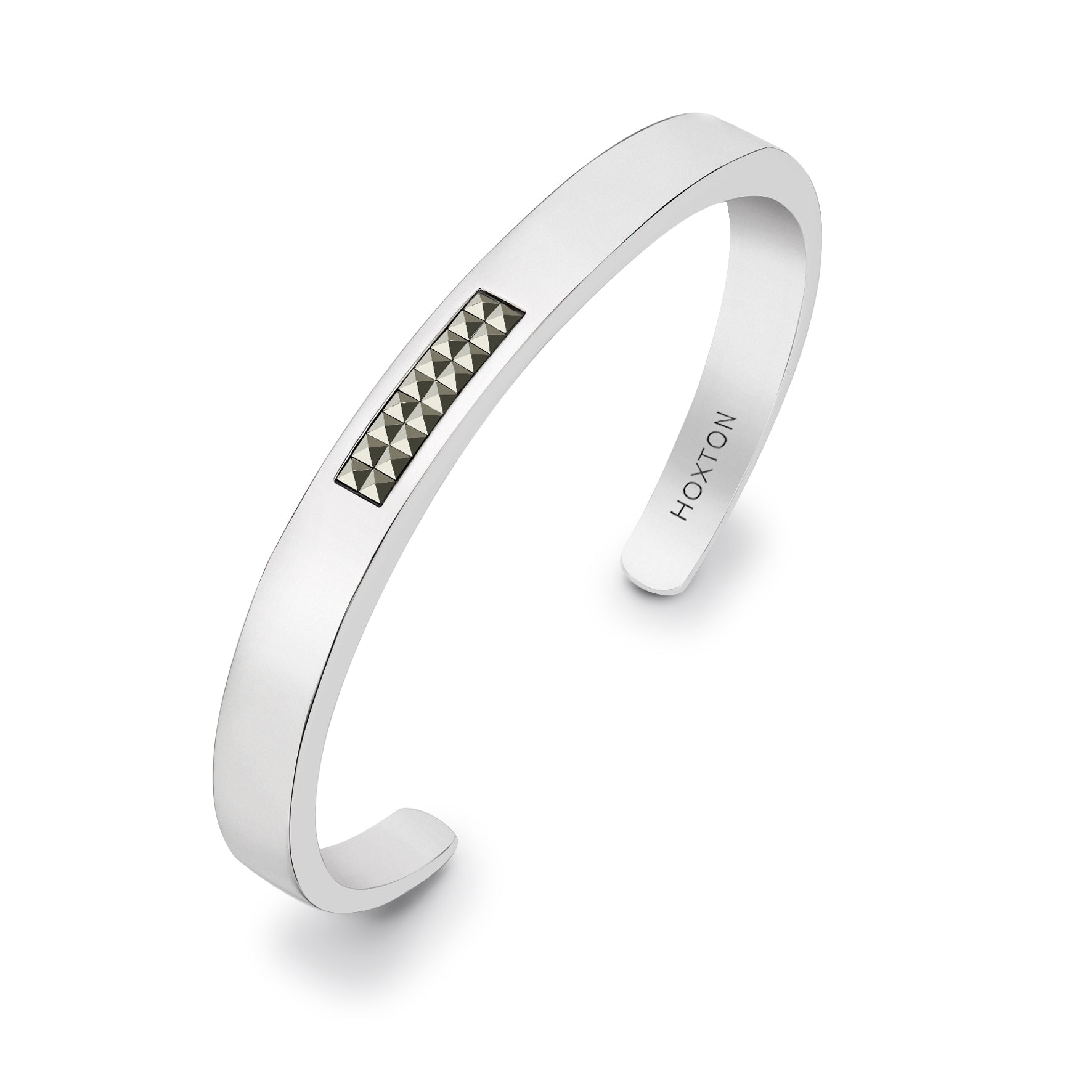 Hoxton London Men's Sterling Silver Pyramid Marcasite Cuff Bangle