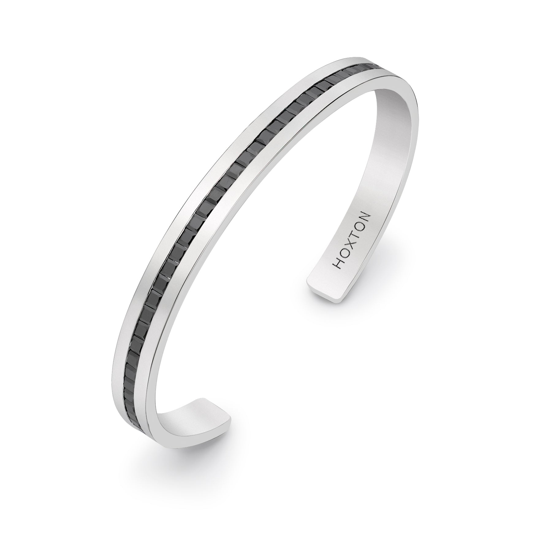 Hoxton London Men's Sterling Silver Stone Black Zirconia Cuff Bangle