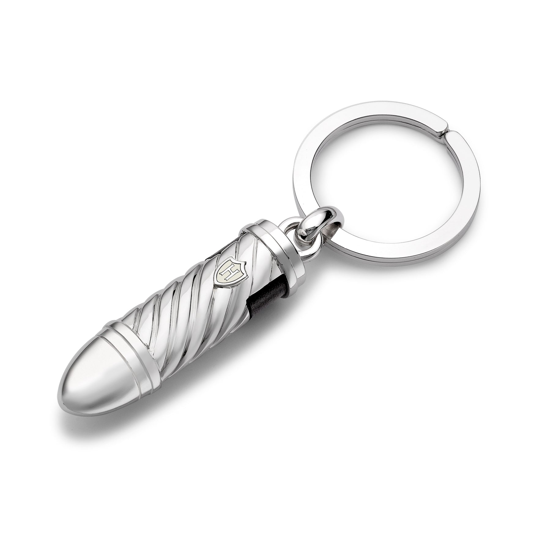 Hoxton London Men's Sterling Silver Twist Bullet Leather Inlay Key Ring