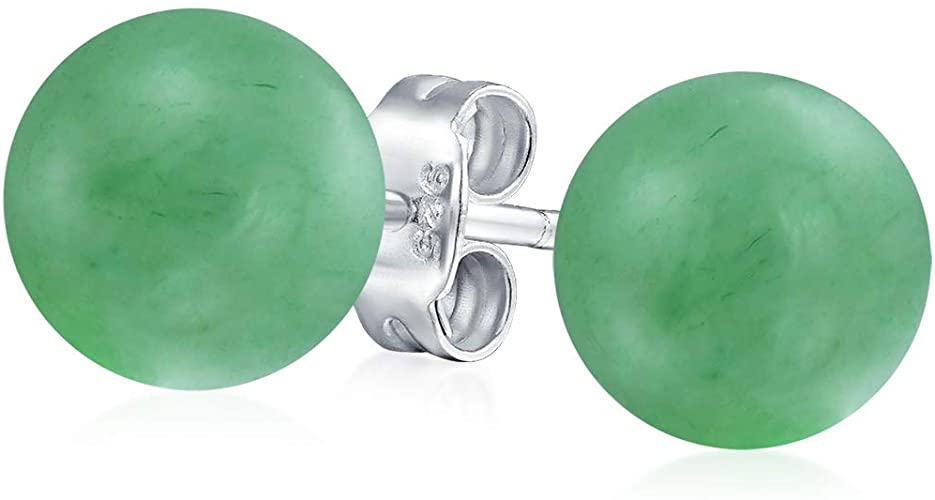 Sterling Silver Dark Green Crystal Bead Ball Stud Earrings