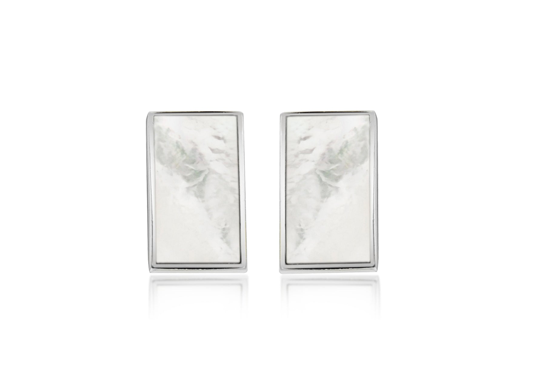Sterling Silver Mother of Pearl Stud Earrings Style: Stud Metal Colour: Silver Metal: Silver Width: 7.4mm Height: 12.2mm Finish: Polished Fitting: Post Setting: Rubover Stone Details: 2 x 6.3mm x 11.3mm Rectangle Mother of Pearls Style: Stud Product Type: Earrings Metal Colour: Silver Metal: Silver