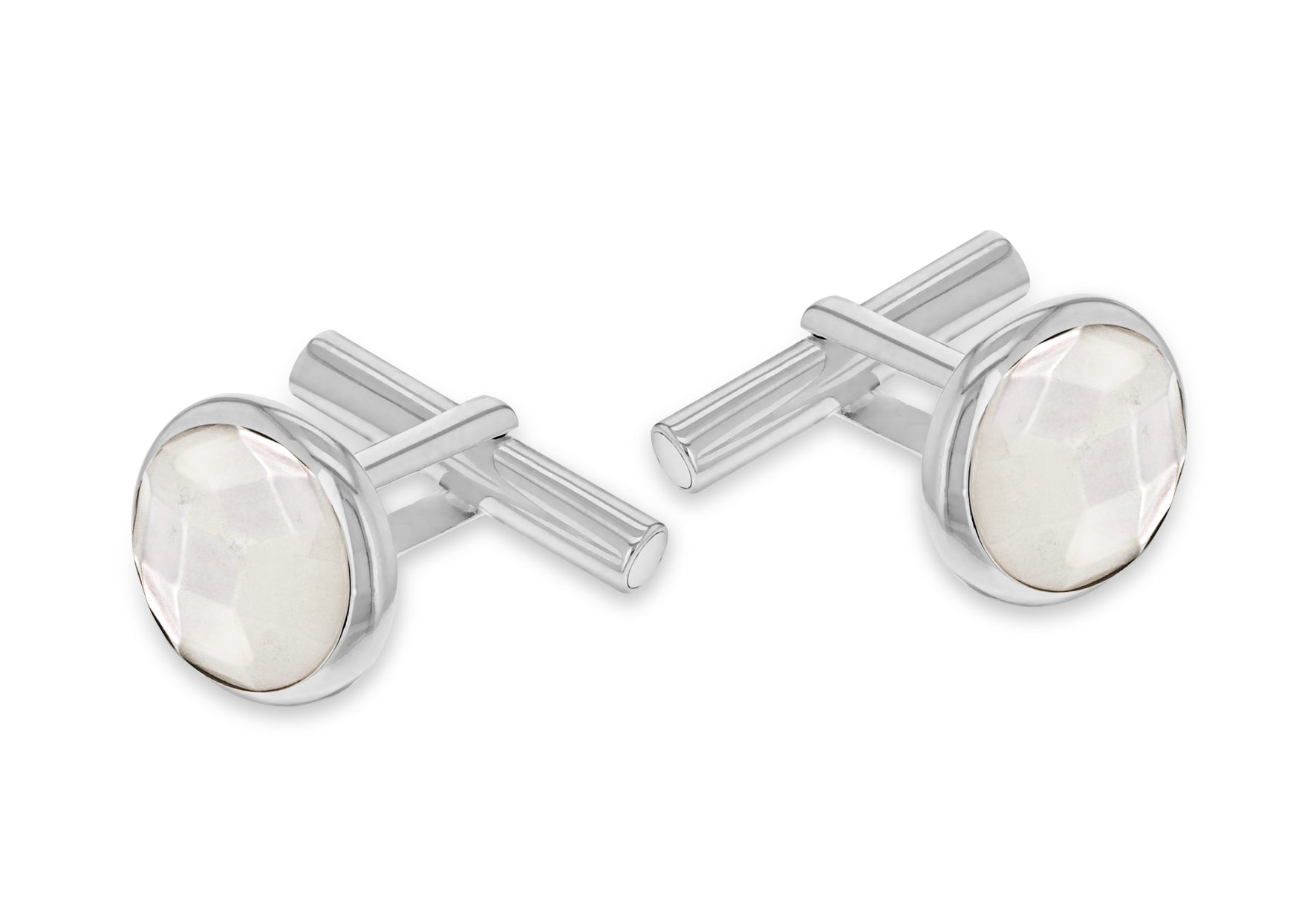 Sterling Silver Round Faceted Mother of Pearl Cufflinks