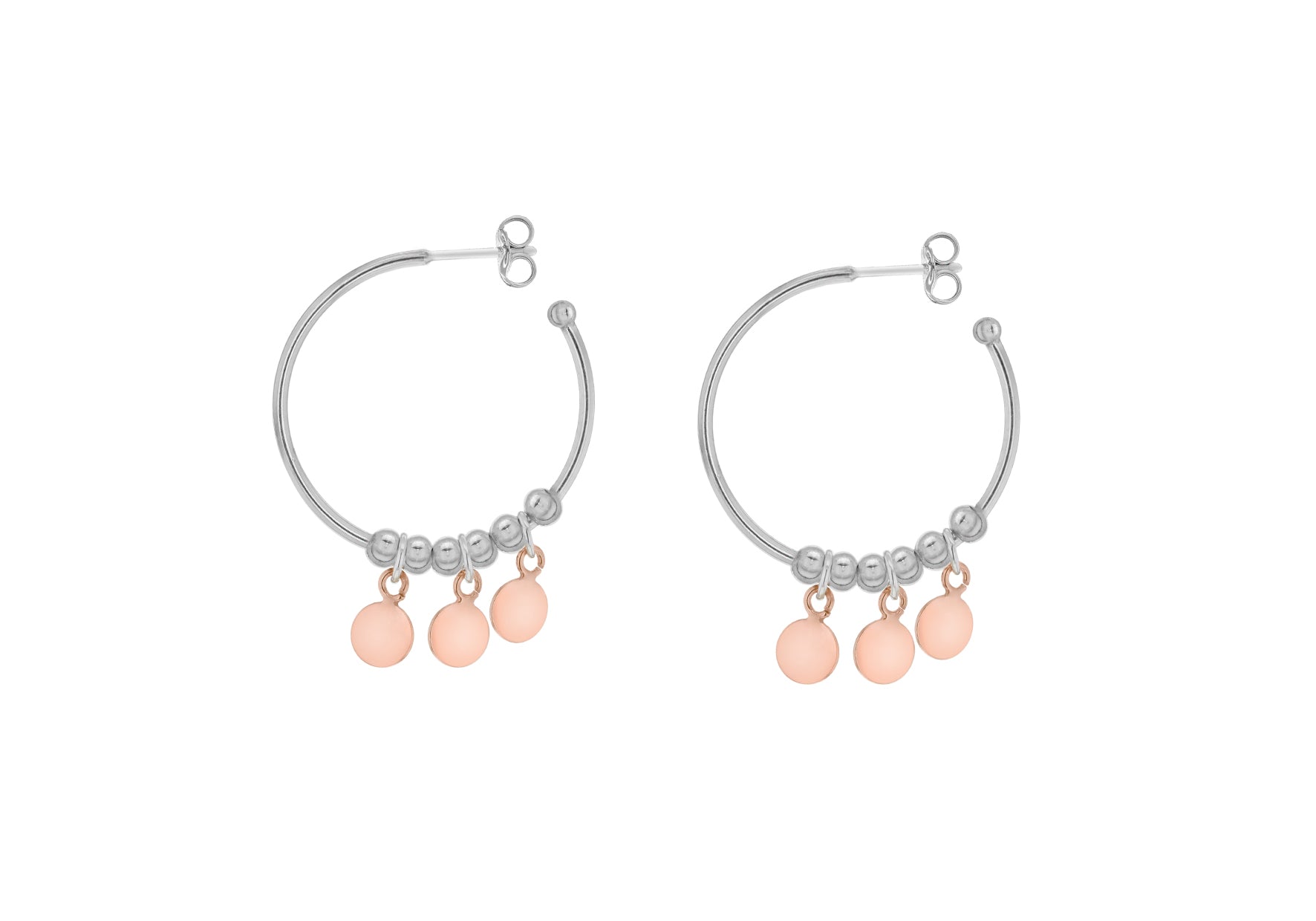 Details: 3mm Balls, 5mm Discs, Hoop Diameter 24mm Width: 3mm Height: 32mm Gold Details: Sterling Silver & Rose Gold Plate Finish: Gold Plated Fitting: Post Style: Hoop Product Type: Earrings Metal Colour: 2 Colour Metal: Silver