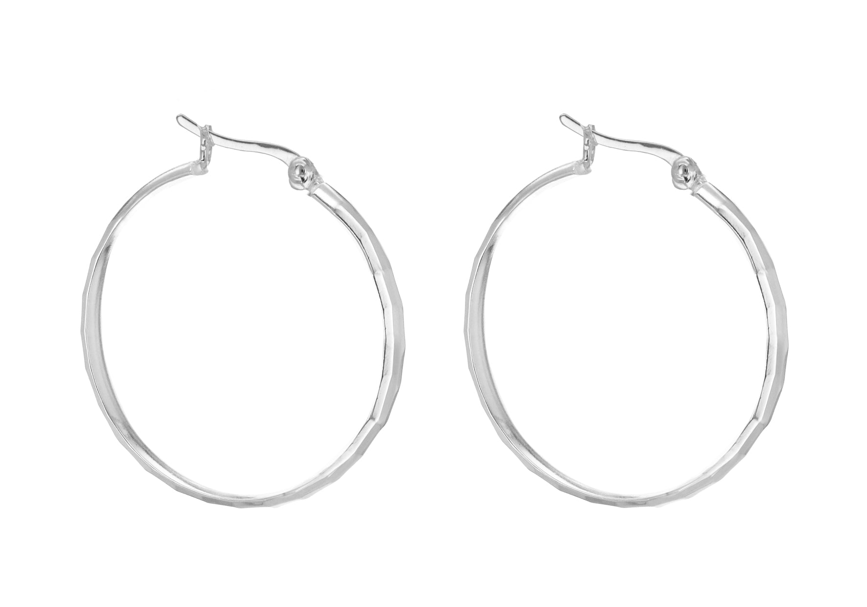 Width: 2.9mm Diameter: 30mm Finish: Diamond Cut Fitting: Hinged Post Style: Creole Product Type: Earrings Metal Colour: Silver Metal: Silver
