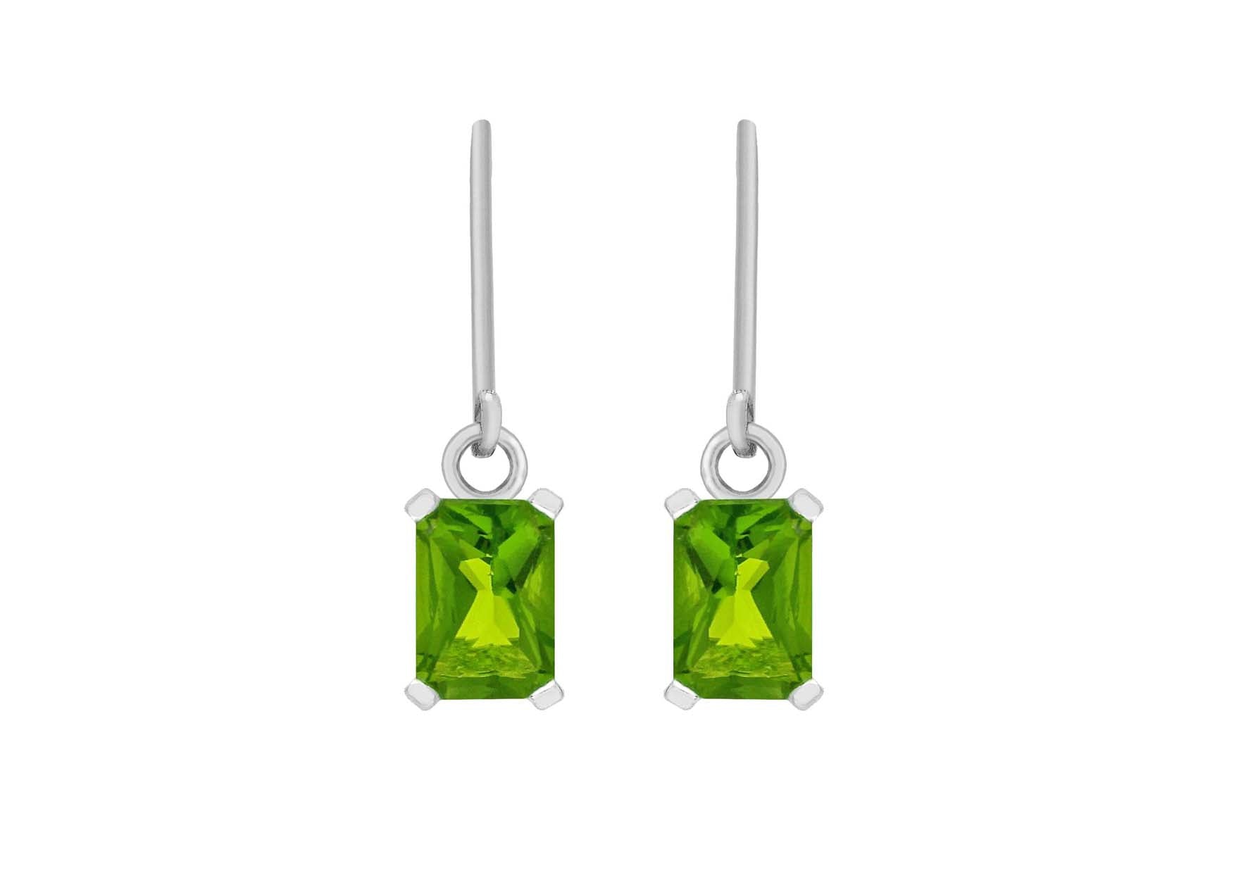 Sterling Silver Green CZ Drop Earrings Width: 5.8mm; Height: 20.5mm; Finish: Polished; Fitting: Hook; Setting: Claw; Stone Details: 2 x 5mm x 7mm Green CZs; Style: Drop Metal Colour: Silver Metal: Silver