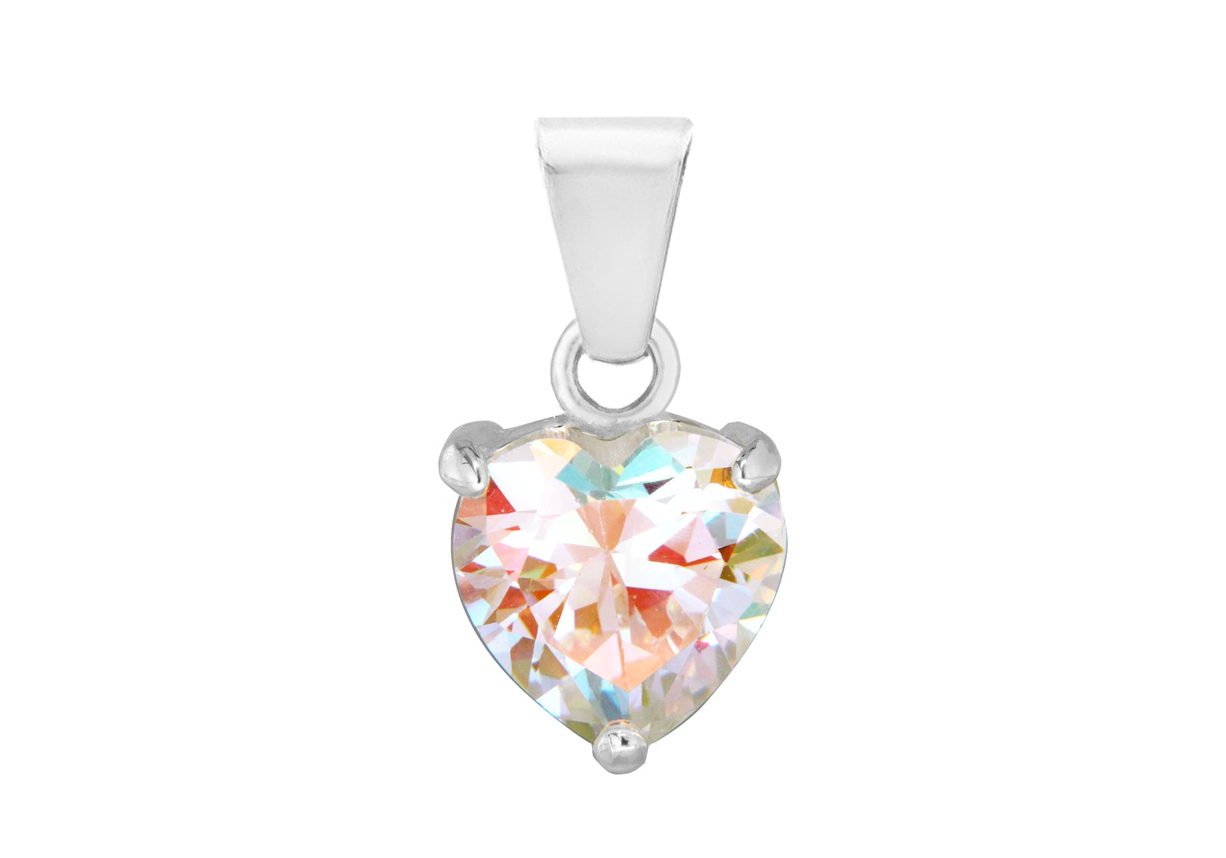 Pendant Height: Including Bail 20mm Pendant Width: 10.5mm Finish: Polished Setting: Claw Stone Details: 1 x 9.5mmx10mm Heart Aurora Borealis CZ Style: Stone Set Product Type: Pendants Metal Colour: Silver Metal: Silver