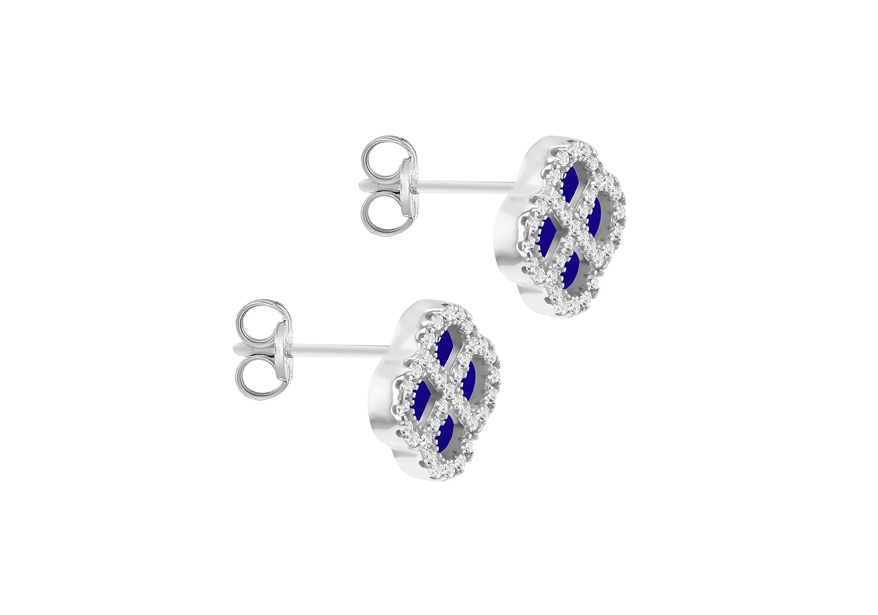 Sterling Silver Blue Lazurite Clover & White Zirconia Stud Earrings