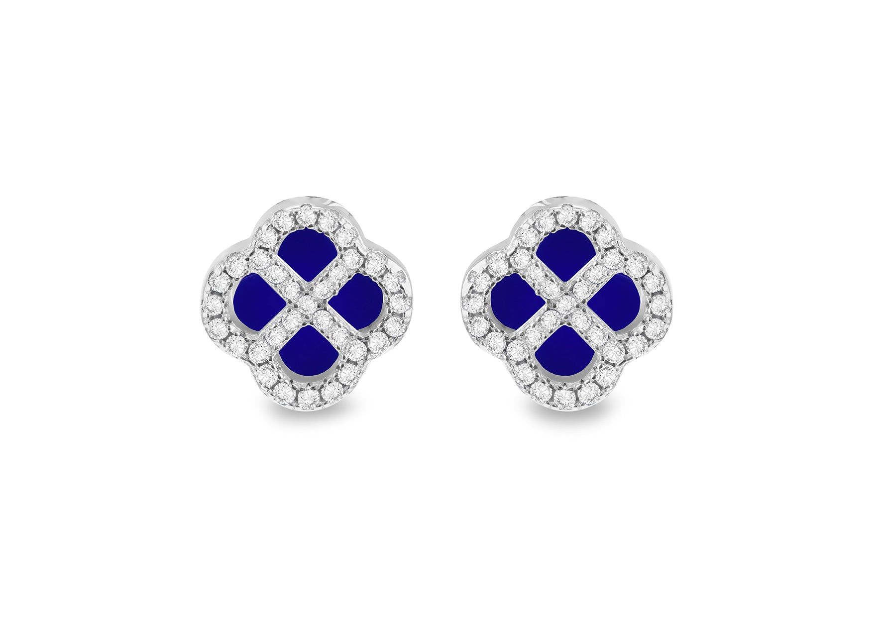 Sterling Silver Blue Lazurite Clover & White Zirconia Stud Earrings Sale price$229.00