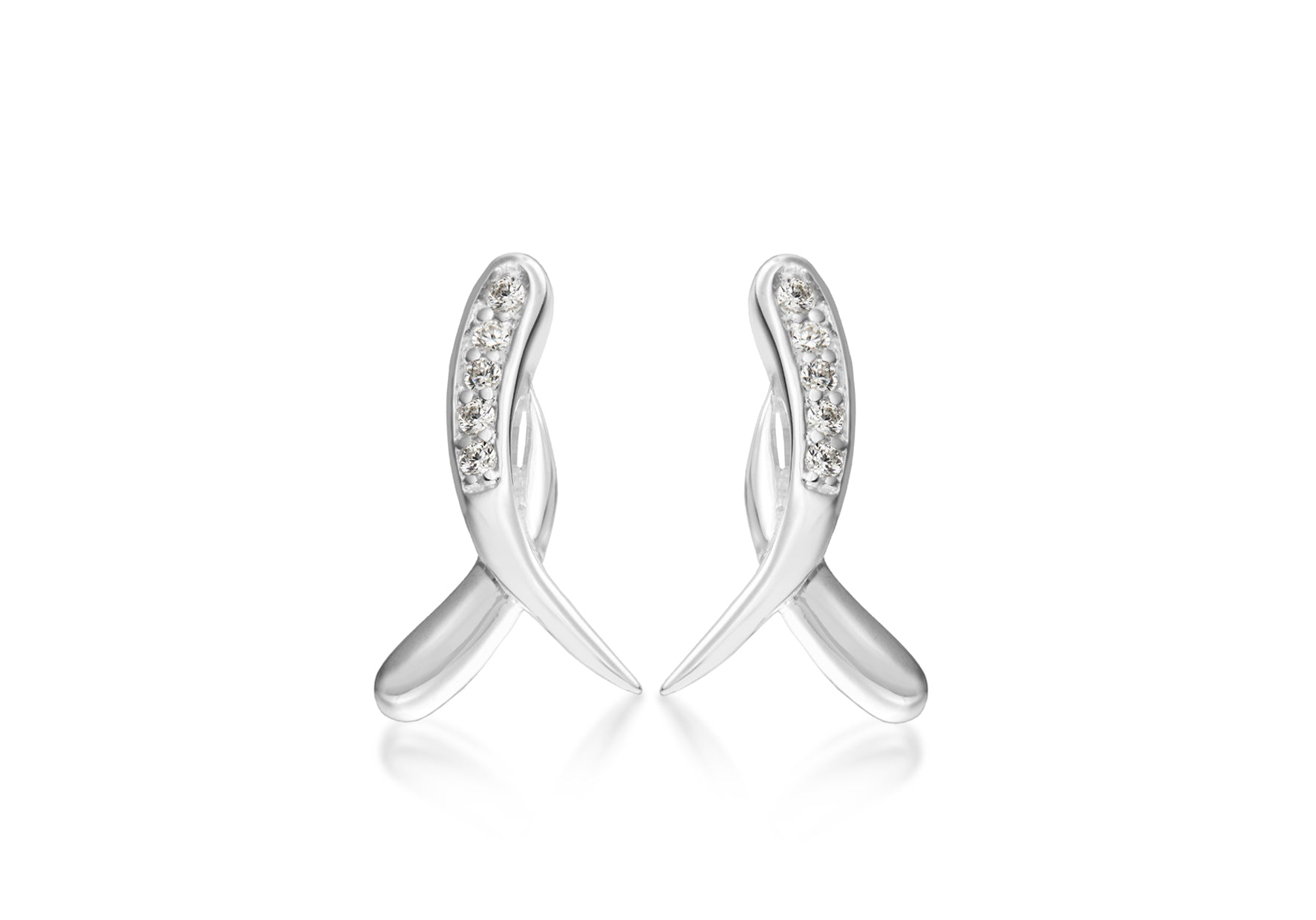 Sterling Silver White Zirconia Ribbon Stud Earrings