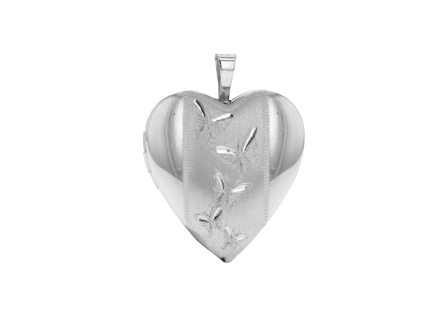 Sterling Silver Etched Butterfly Detail Heart Locket