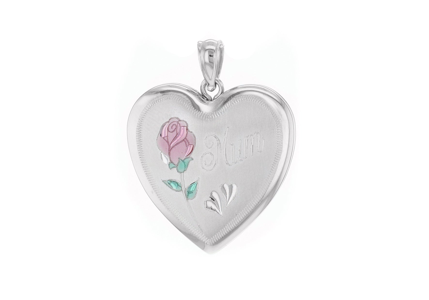 Sterling Silver Large Etched Mum Rose Heart Locket