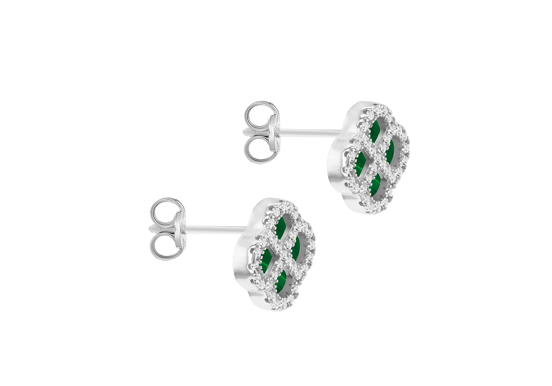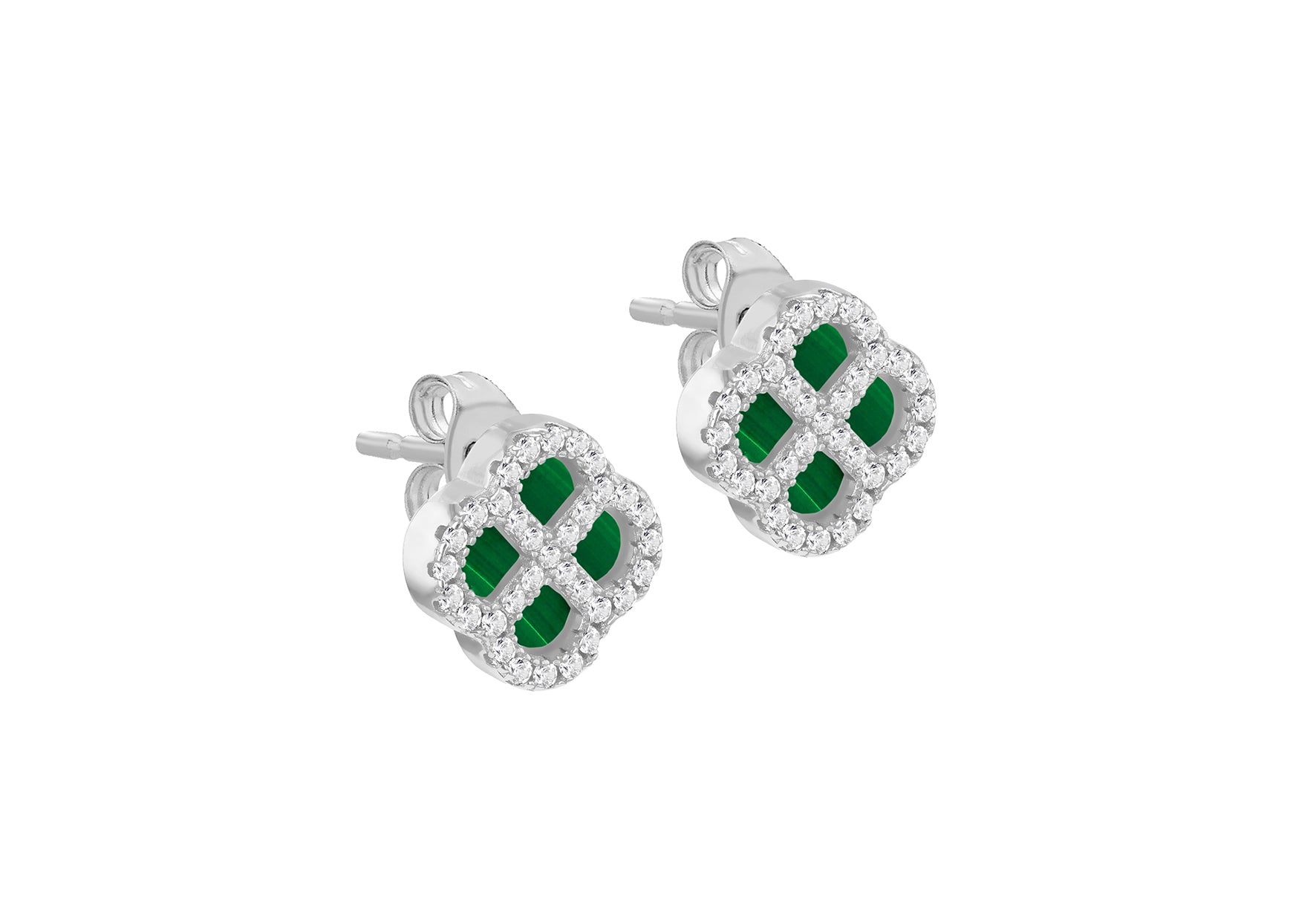 Sterling Silver Malachite & White Zirconia Clover Stud Earrings