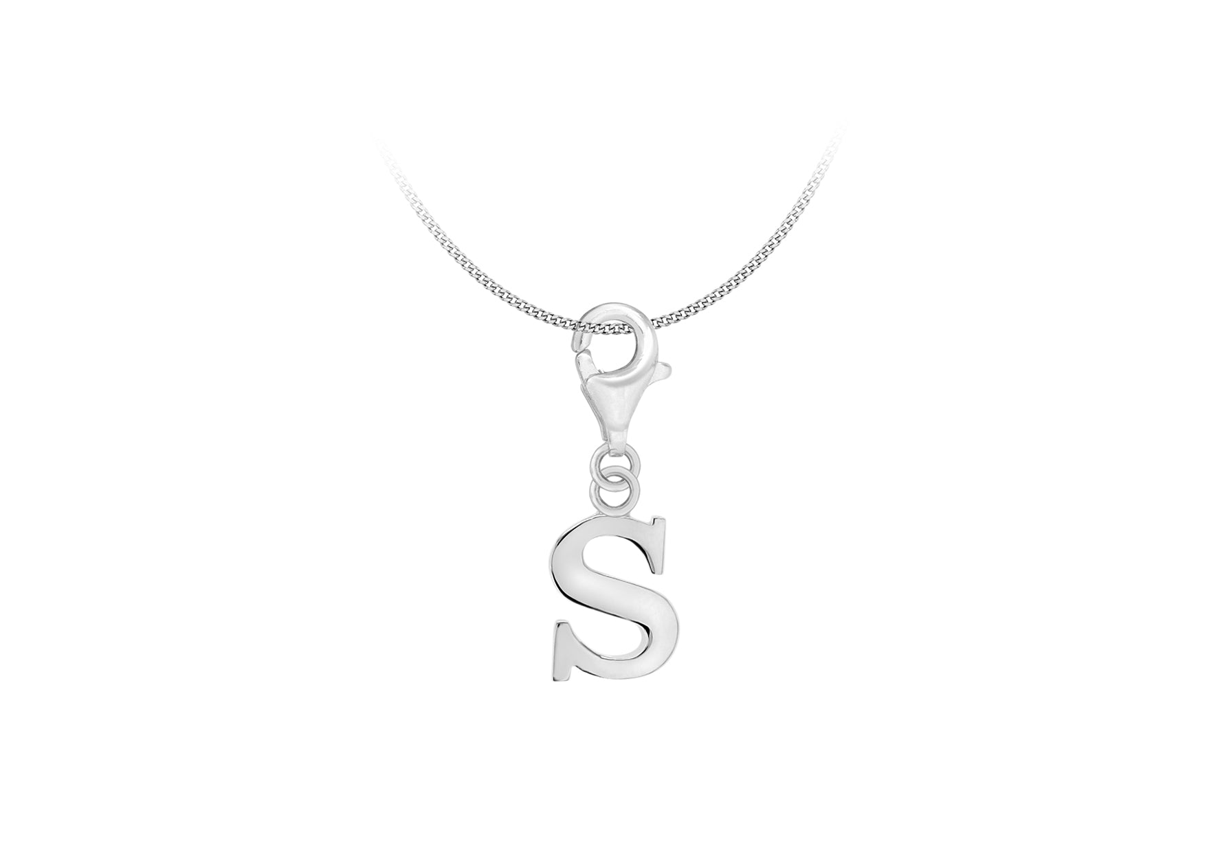 Sterling Silver Plain 'S' Lobster-Clasp Initial Charm Pendant
