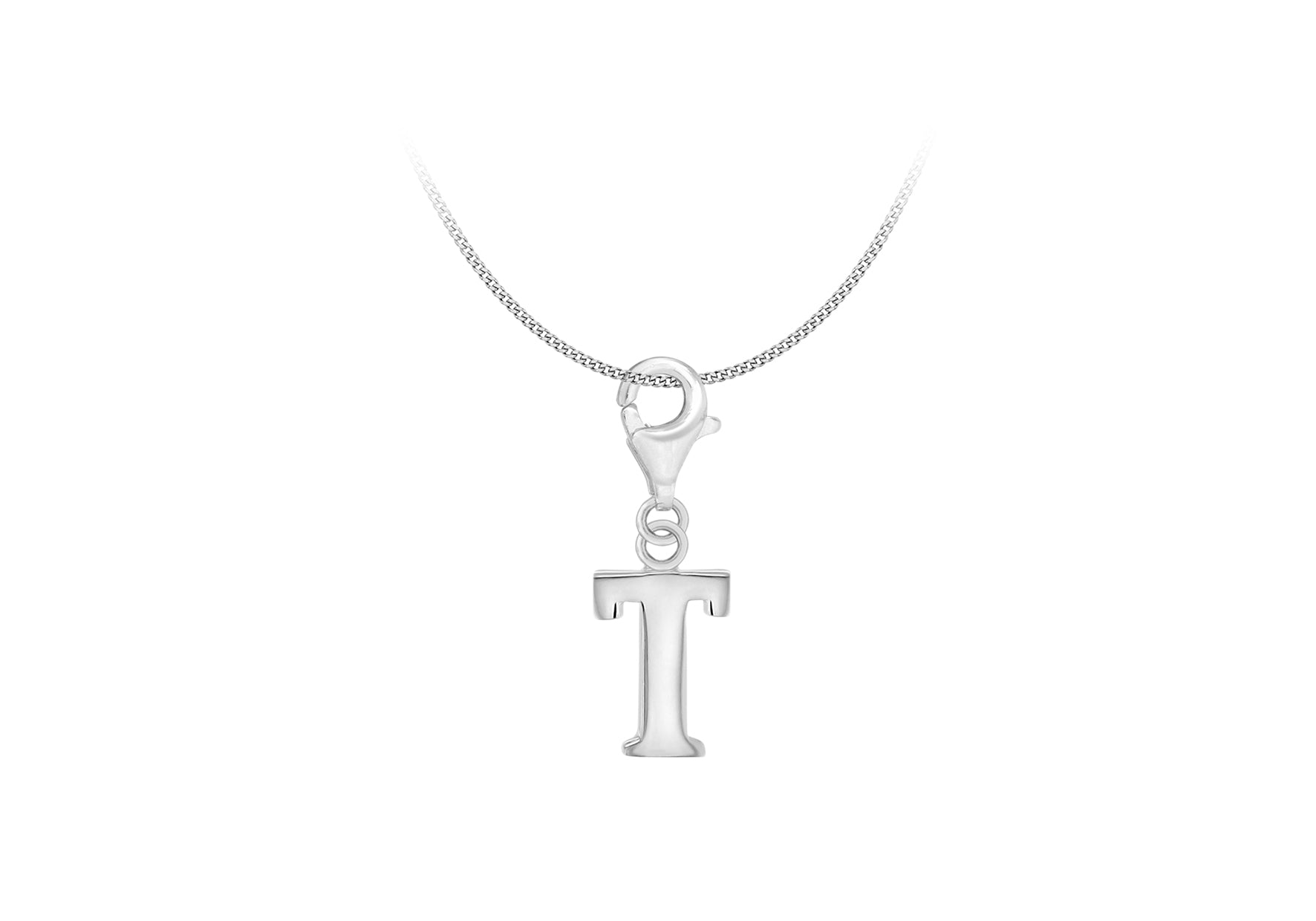 Sterling Silver Plain 'T' Lobster-Clasp Initial Charm Pendant