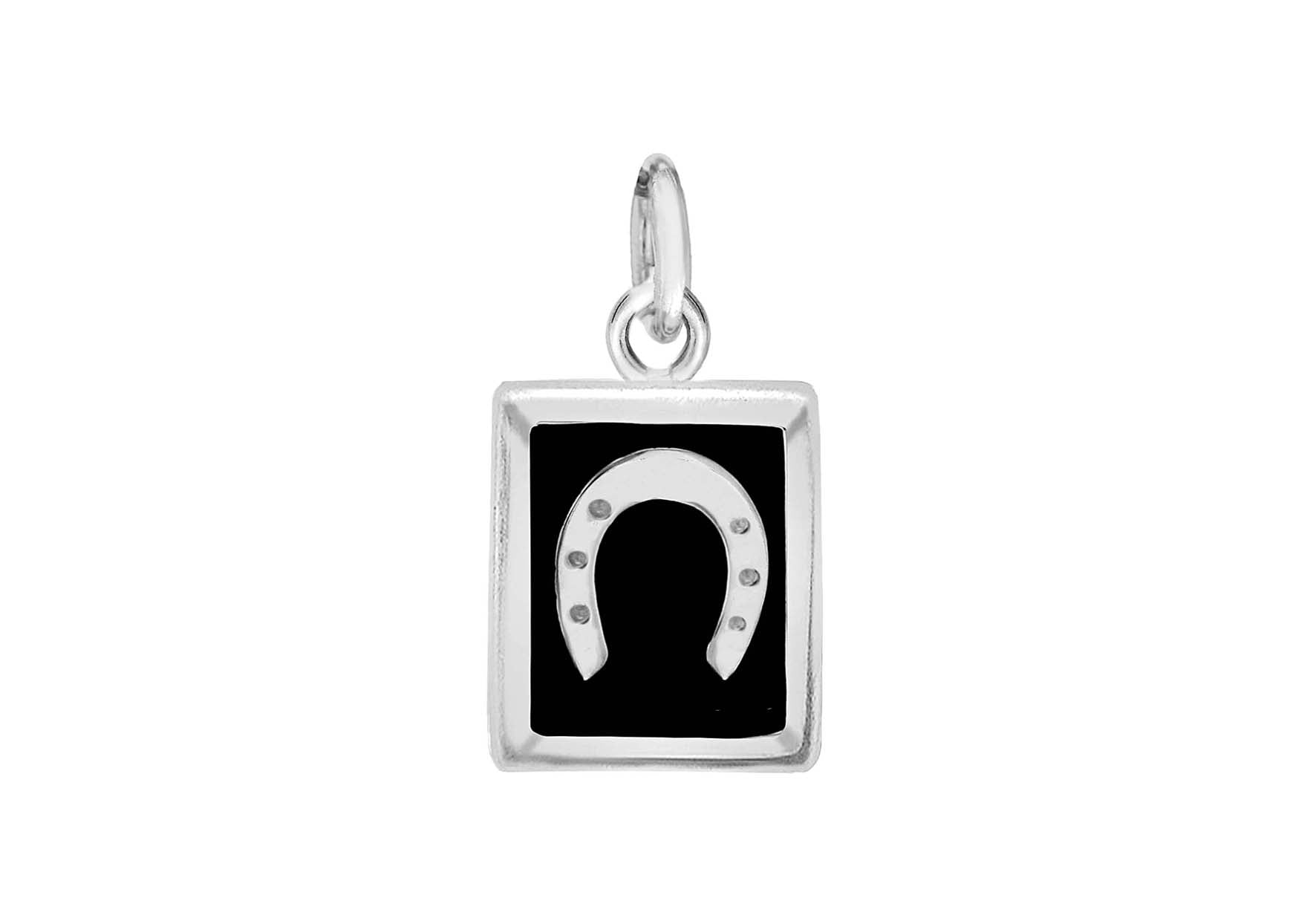 Sterling Silver Rectangular Black Enamel Horseshoe Pendant
