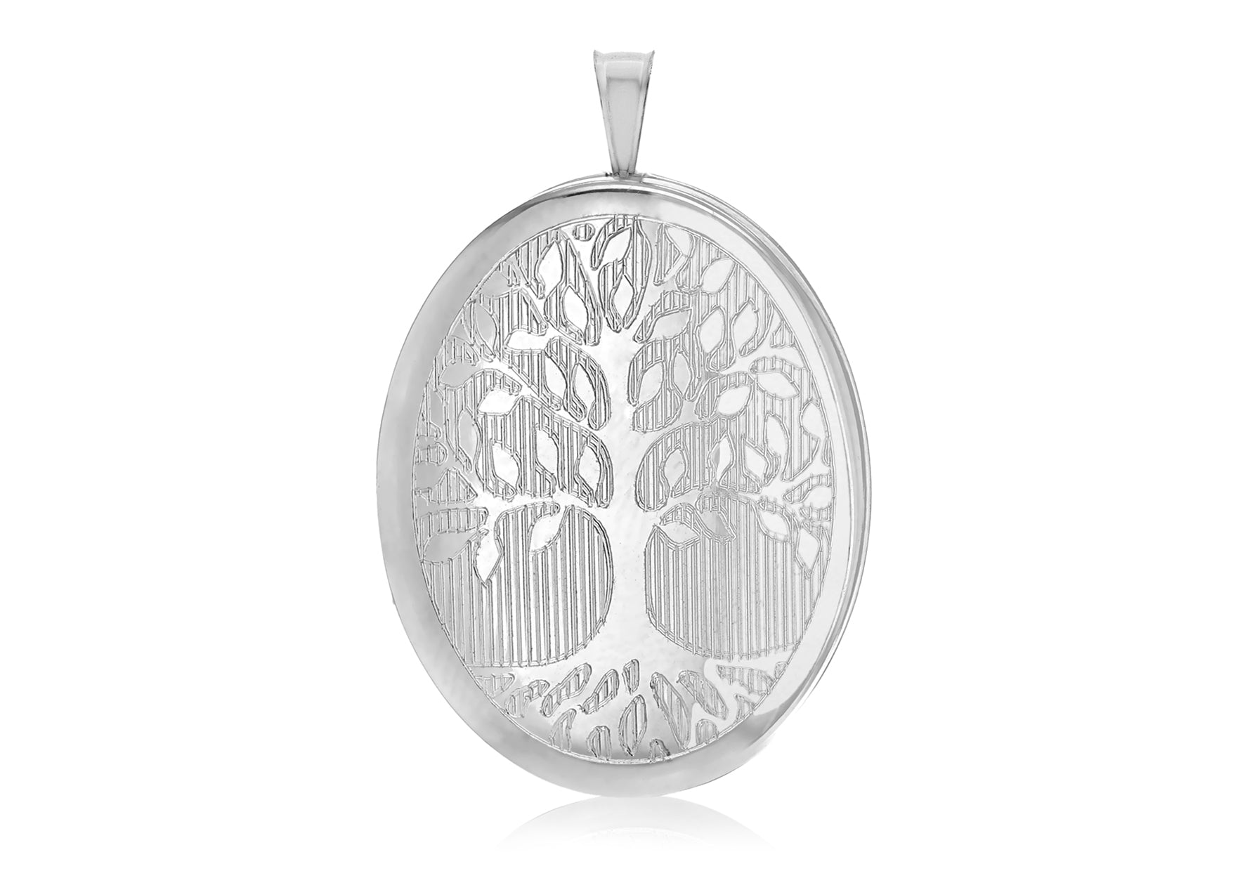 Sterling Silver Rhodium Plated Oval 'Tree of Life' Locket Pendant