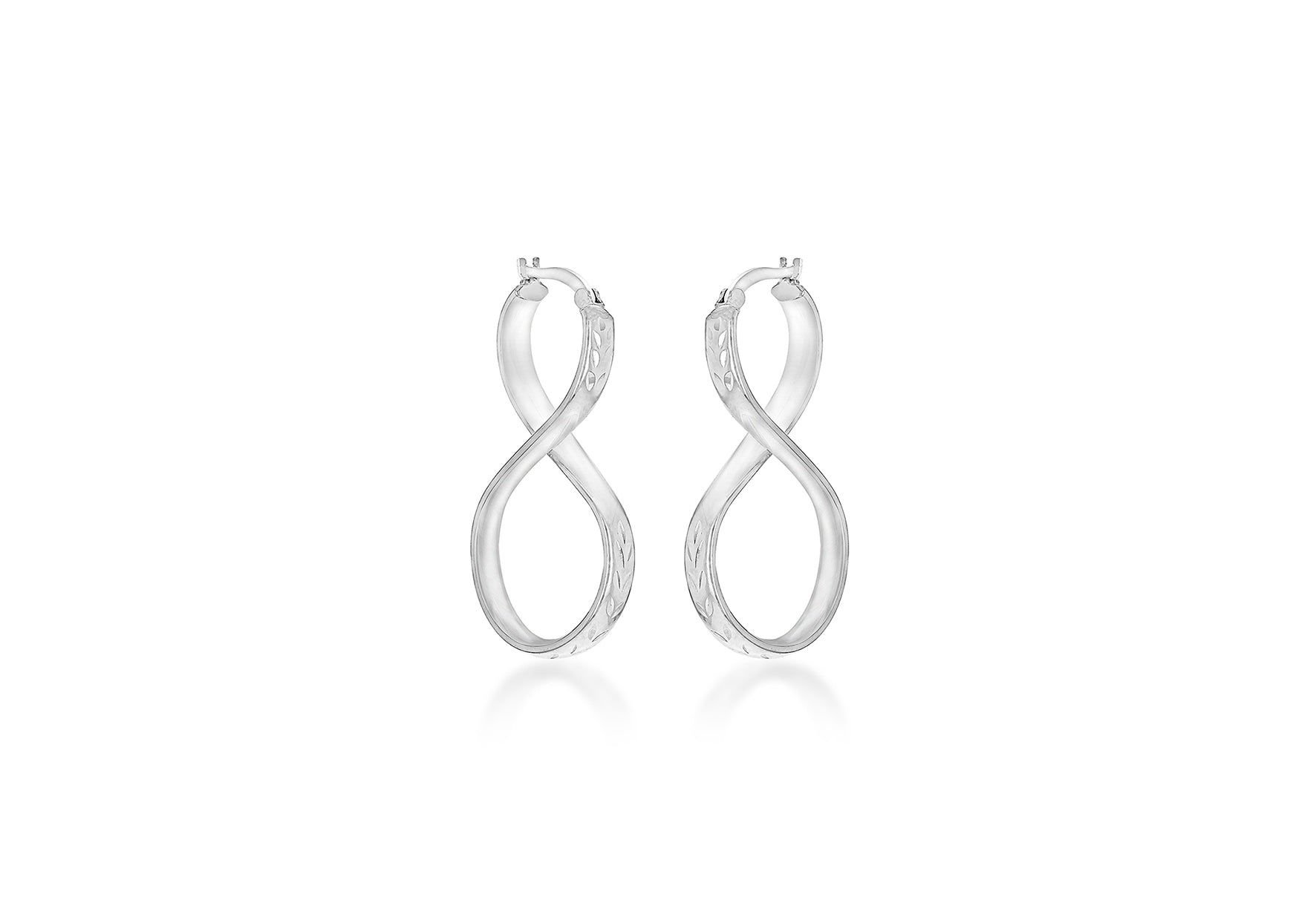 Sterling Silver Rhodium Plated Diamond Cut 'Figure 8' Creole Earrings