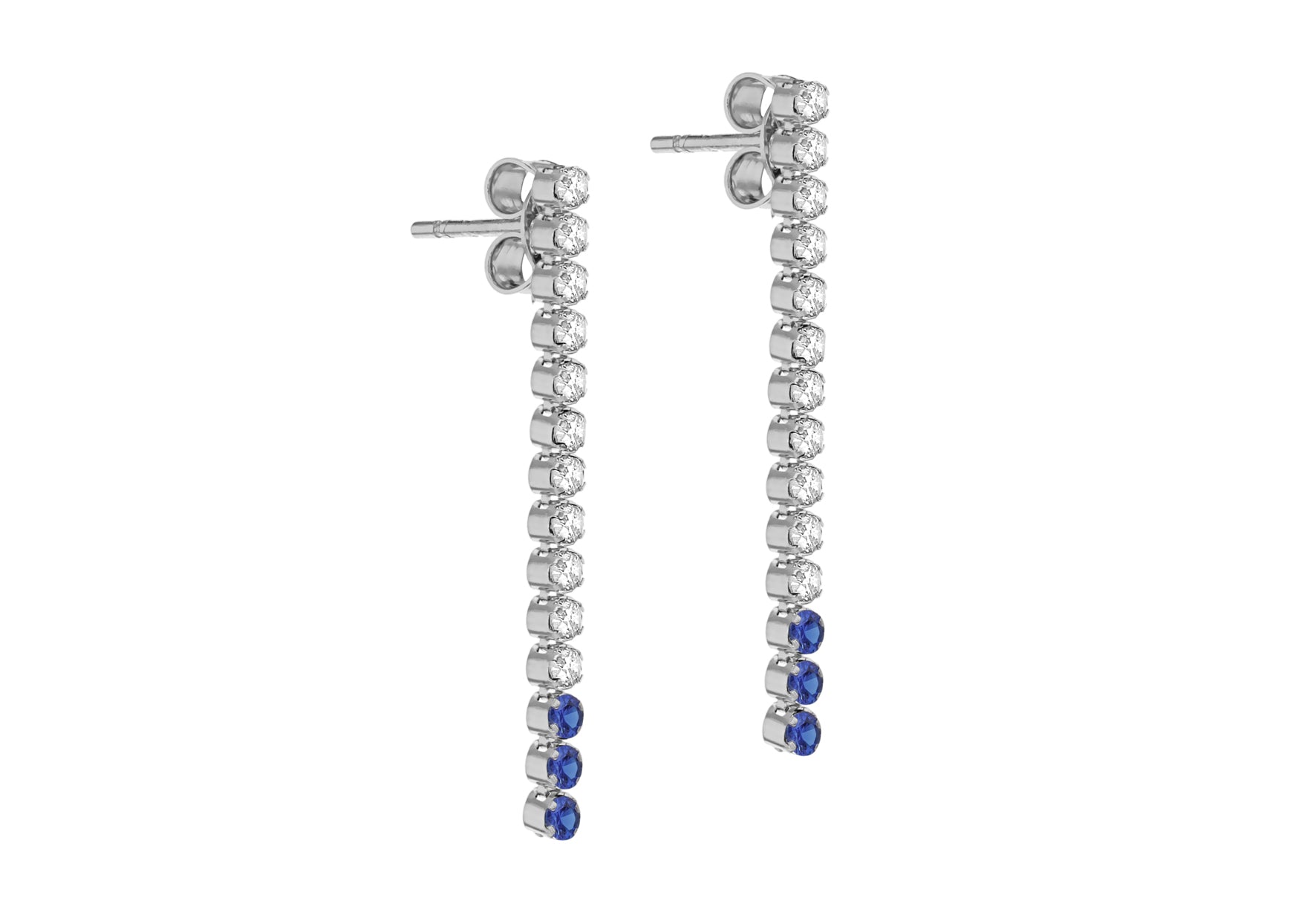 Sterling Silver Rhodium Plated Blue and White CZ Stone Set Drop Earrings Width: 2.4mm; Height: 33mm; Fitting: Post; Setting: Claw; Stone Details: 2mm CZ Stones; Style: Drop Metal Colour: Silver Metal: Silver