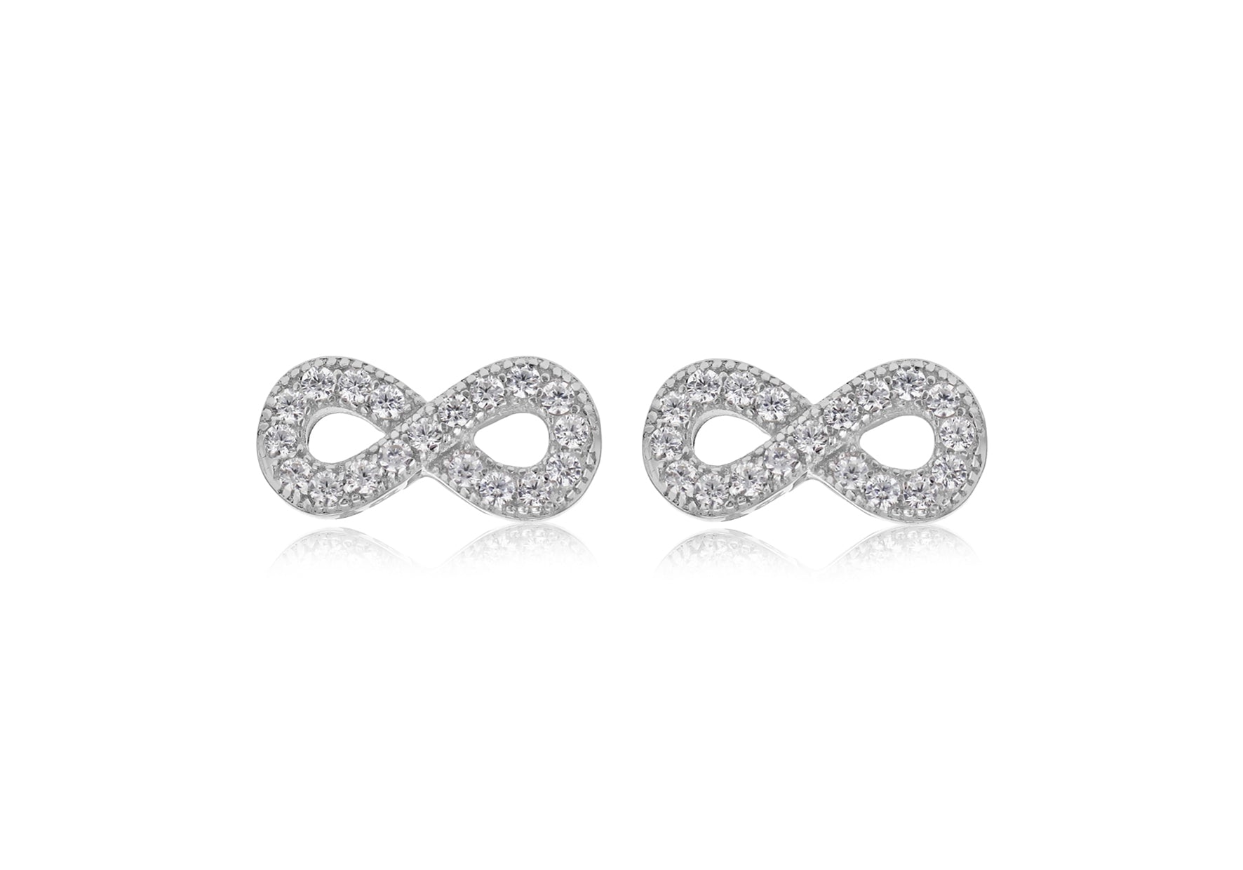 Sterling Silver Rhodium Plated Zirconia Infinity Stud Earrings