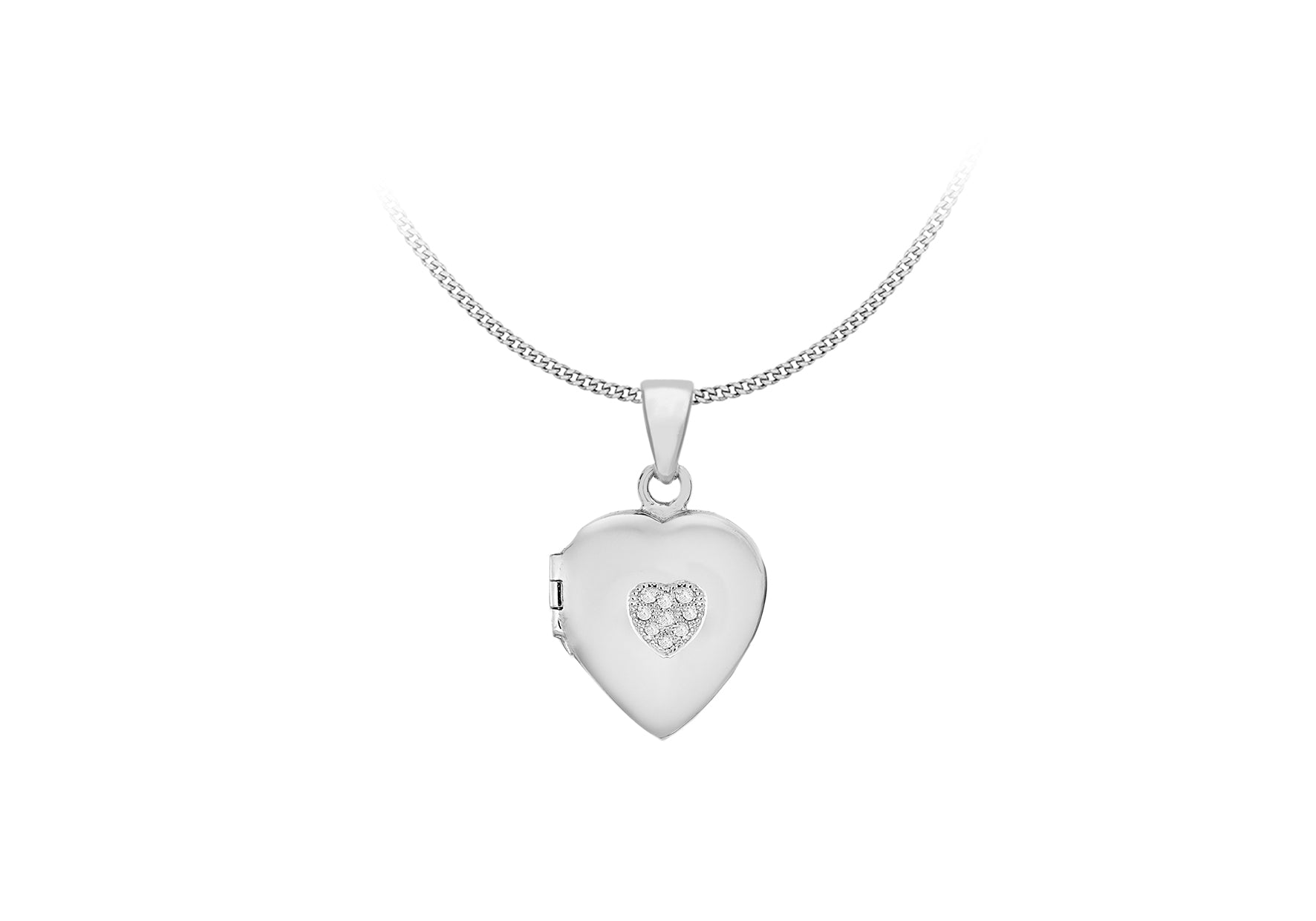 Sterling Silver Rhodium Plated Zirconia Heart Locket Pendant