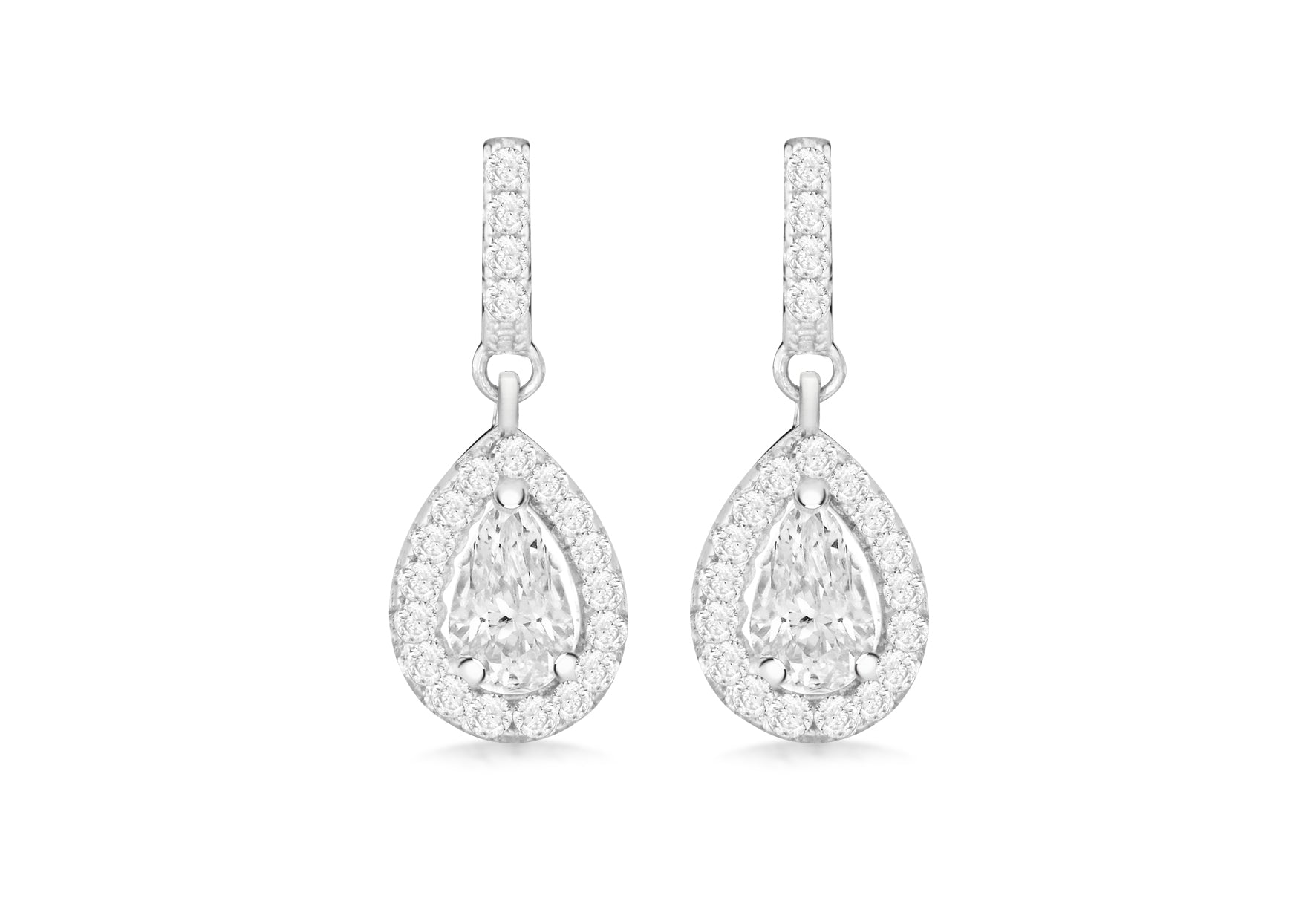 Sterling Silver Rhodium Plated Zirconia Teardrop Earrings Width: 7mm; Height: 20mm; Fitting: Post; Setting: Pave; Stone Details: 1mm / 6mmx3mm CZ Stones; Style: Drop Metal Colour: Silver Metal: Silver