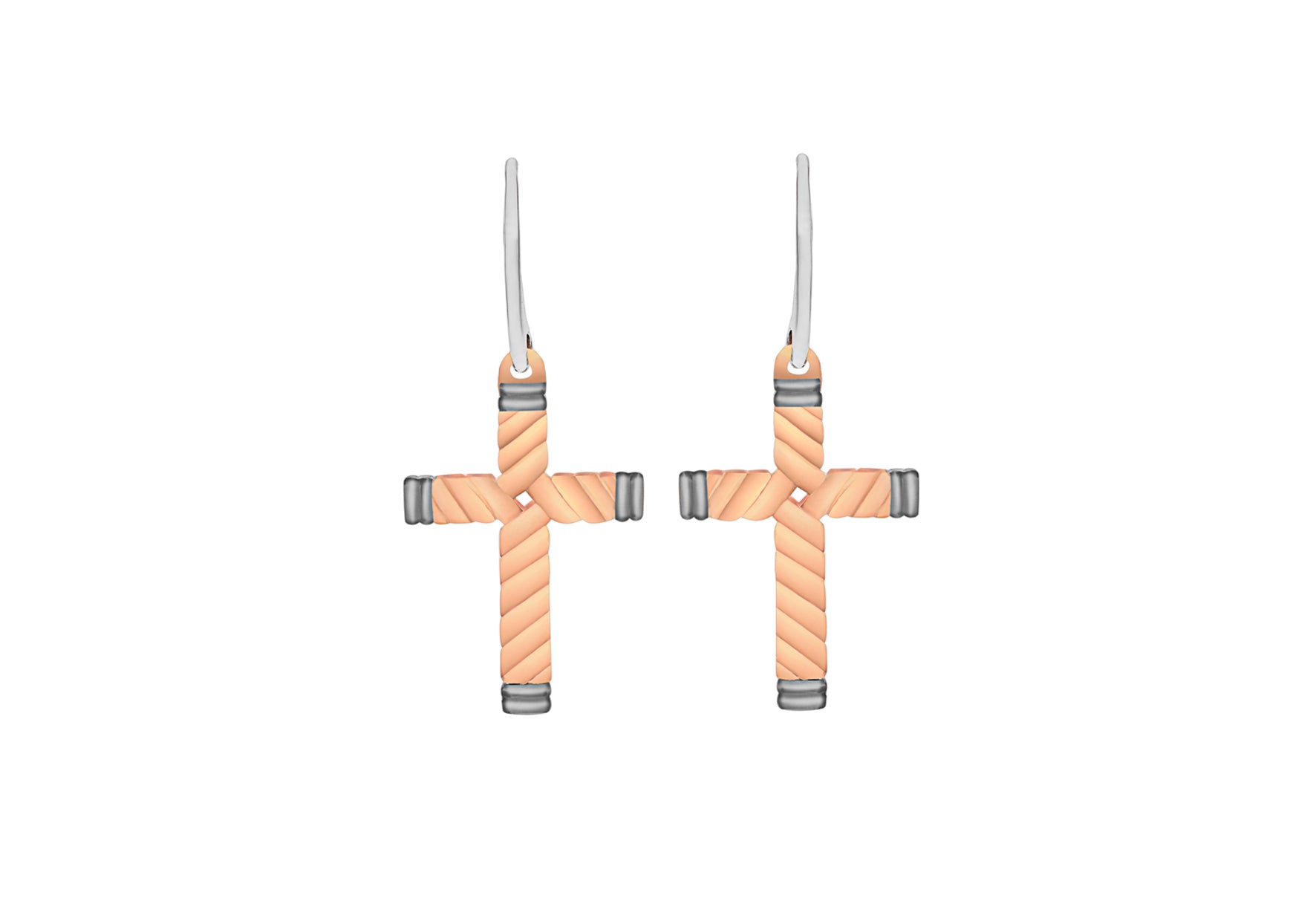 Sterling Silver Rose Gold Rhodium Plated Twist Cross Drop Earrings