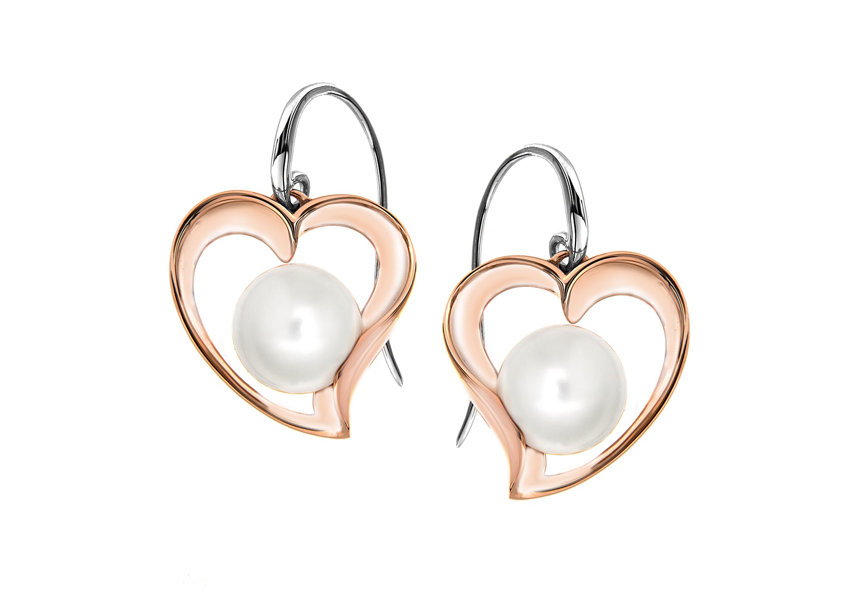 Sterling Silver Rose Gold Plated Pearl Fickle Heart Drop Earrings Width: 19mm; Height: 30mm; Fitting: Hook; Stone Details: 10mm Pearl; Style: Drop Metal Colour: Rose Metal: Silver